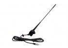 třešní anténa určená pro příjem rozhlasového signálu v automobilu, složená ze šroubovacího prutu, upevňovací patice a přívodního kabelu.